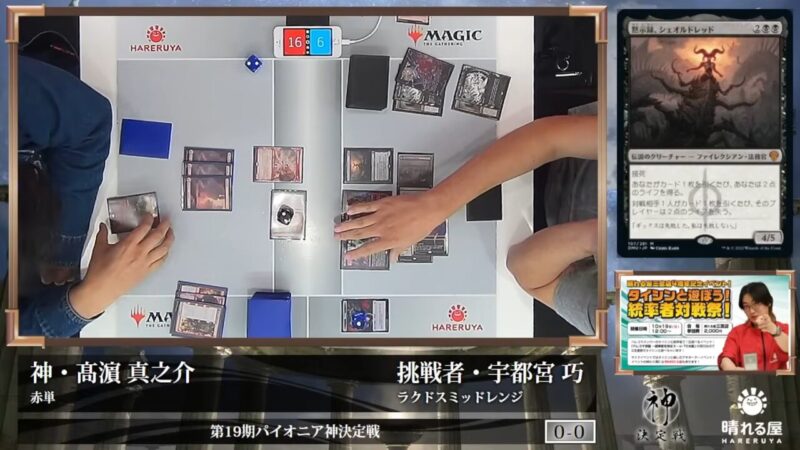 前回、自身が打ち倒した「神」である宇都宮さんを、前回と同じ【赤単アグロ】で迎え撃った髙濵さん。