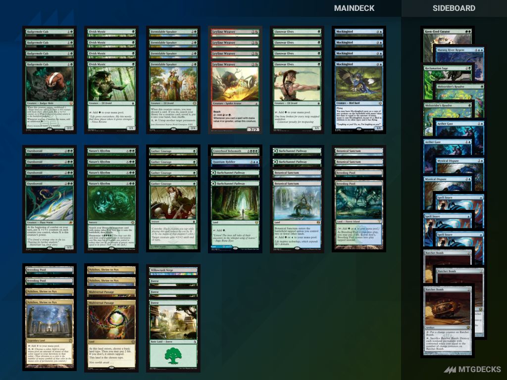 ちなみに使用者のXfile氏の記録を見ると、モダンでは《献身のドルイド》コンボ、スタンダードでは4C《自然の律動》…と、緑のサーチデッキの化身と化しています。すごい。