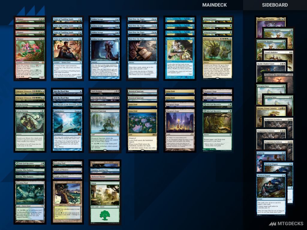 《森の占術》内蔵の《鮮麗》を堂々4枚採用!マナベース負荷は高いですが、火力モード搭載と回復のオマケは侮れません。