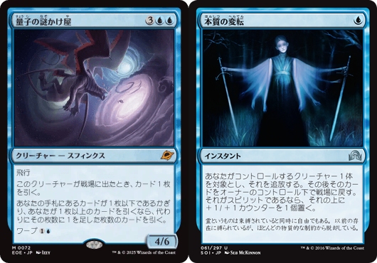 また、《本質の変転/Essence Flux》も《量子の謎かけ屋/Quantum Riddler》しか当て先がないのも非常に気になりました。