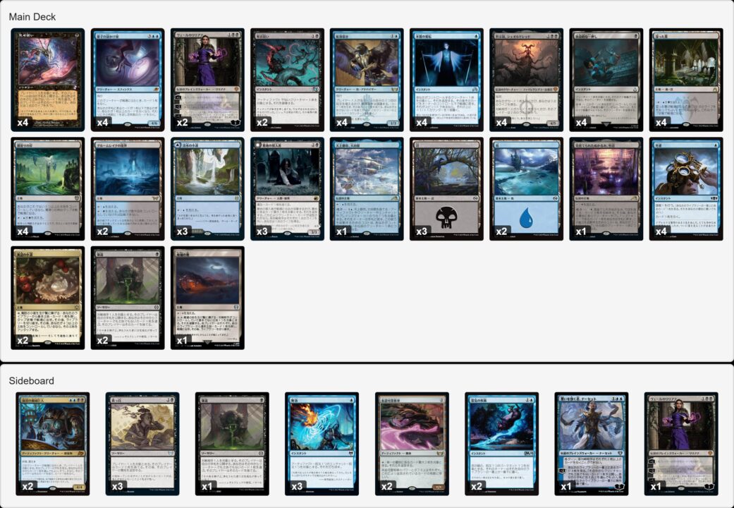 特に今回の《量子の謎かけ屋/Quantum Riddler》と《本質の変転/Essence Flux》のデッキはそこまで研究されておらず、元にしたリストも正直言って完成度は高くないものでした。